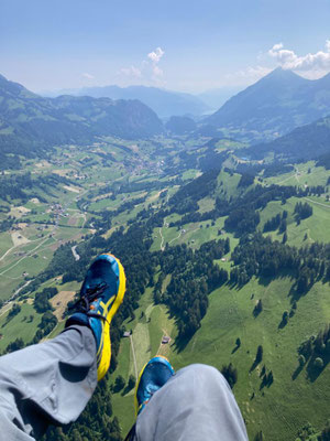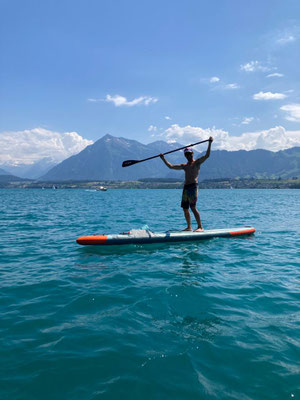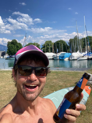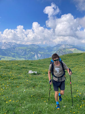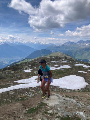 So kam es, dass ich gestern Morgen mit dem Zug und der Bahn auf die Bettmeralp fuhr und pünktlich um 10.15 Uhr im 4. Startblock auf die 21 km geschickt wurde. Bei der Anmeldung musste ich eine ungefähre Zeit angeben. Da ich nicht einschätzen konnte, wie schnell ich sein würde, gab ich eine Laufzeit von 2h und 50 Minuten an. Ein Fehler, wie sich herausstellen sollte. Auf Rat von Roger, welcher mich als Betreuer begleitete, joggte ich gemütlich los. Doch schon bald, als wir in den ersten Trail abbogen kam Stau auf. Die Läufer und Läuferinnen vor mir waren es wohl nicht gewohnt über Stock und Stein zu rennen. Ich war genervt und fing an zu überholen, was auf den schmalen Wanderwegen keine einfache Sache war. Oft rannte ich neben dem Weg über Stock und Stein, legte bei kurzen breiten Wegen einen Sprint hin und versuchte so gut wie möglich weiter nach Vorne zu gelangen. Um den Bettmersee wurde der Weg wieder etwas breiter und ich rannte schneller um wieder ein paar mühsame Läufer hinter mir lassen zu können. So kam was geschehen musste, bei einem Überholmanöver trat ich mit dem rechten Fuss in ein Loch und mein Fuss knickte um. Die Wörter "Huere Siech" entwichen meinem Mund. Weil ich an meinen Füssen bereits alle Bänder gerissen habe, fühle ich bei jedem Misstritt jeweils kurz einen Schmerz, welcher dann zum Glück bald wieder von selber verschwindet. So hiess es kurz auf die Zähne beissen, nicht daran herumstudieren und weiter rennen. Weil ich immer wieder ausgebremst wurde, lief ich nie über meinem Limit. Meistens rannte ich in meinem Komfortbereich. Als ich bei der Villa Cassel ankam, kamen schöne Erinnerungen vom letzten Sommer hoch, als ich dort gearbeitet und gewohnt hatte. Ab dort kannte ich die gesamte Strecke. Der Casselweg war sozusagen meine Heimstrecke im letzten Sommer. Auf dem Grat in Richtung Bettmerhorn hat sich die Menge zum Glück ziemlich in die Länge gezogen und das Überholen wurde einfacher. Ehrlich gesagt fühlte es sich super an immer nur überholen zu können. Selber überholt wurde ich auf der gesamten Strecke nur von zwei Männern. Kurz vor dem Ziel, beim letzten, mega steilen Aufstieg in Richtung Bergstation des Bettmerhorns stand Roger und feuerte mich an. Ich konnte nochmals einen Zahn zulegen und marschierte in grossen Schritten in Richtung Ziel. Total glücklich und super zufrieden mit mir erreichte ich nach 2 Stunden und 28 Minuten das Ziel. Ich fühlte mich super und hätte auch noch weiterrennen können. Ich habe bei jeder Verpflegung kurz angehalten und mich mit Wasser und Bananen versorgt und bei den letzten beiden Stationen jeweils noch einen Becher Cola getrunken. Auch bin ich extra ohne Uhr gerannt. Ich wollte nicht wissen wie lange ich bereits unterwegs war und auch nicht wie viele Kilometer ich bereits absolviert hatte. Zum Glück konnte ich auch die Kilometermarkierungen immer gekonnt ausblenden. Erst bei der 19 Kilometer Markierung nahm ich das Schild das erste Mal wahr. Doch da wusste ich sowieso bereits, dass es nicht mehr weit ist, da man das Ziel auf dem Grat schon bald mal erkennen kann.
