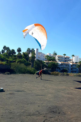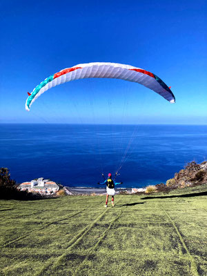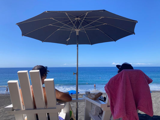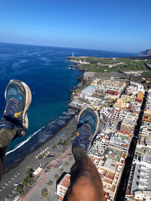 Drei Nächte verbringen wir direkt am Strand beim Puerto Naos. Wir schwimmen im Meer, geniessen die Wellen auf dem SUP und unternehmen unser erstes Hike und Fly im Ausland und landen direkt neben unserem Sämi am Strand. Der Startplatz inmitten der Bananenplantagen mit Sicht aufs Meer. Ein unbeschreiblich schönes und überwältigendes Gefühl beim Fliegen übers Meer.