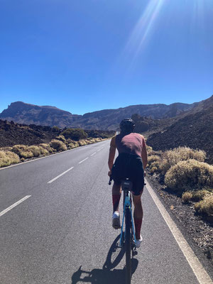 Mit viel Vorfreude und dem Ungewissen, was mich in den zwei Monaten erwarten würde, fahre ich am 20. September alleine mit unserem Sämi los in Richtung Cadiz. Ich lasse mir für die 2000 km durch Frankreich und der Ostküste Spaniens entlang extra genügend Zeit. Unterwegs geniesse ich das Schauspiel der wechselnden Landschaften. Ich lege zwei Stopps ein, wo ich mit meinem Gravel mir bis dato unbekannte Gegenden in Spanien erkunde. Am 22. September erreiche ich die Hafenstadt Cadiz, am südlichen Ende von Spanien. Ich parke direkt am Meer und geniesse den herrlichen Sonnenuntergang und das Strandfeeling. Am nächsten Tag um die Mittagszeit verschiffe ich Sämi auf der Fähre. "Er" hat sich nach den über 2000 Kilometern eine Pause verdient. Ich packe mein Isomätteli, meinen leichten Schlafsack und Snacks für die nächsten zwei Tage in meinen Rucksack und begebe mich an Deck. Zuoberst in der Lounge finde ich ein gmütliches Plätzli neben drei jungen Spaniern und richte mich ein. Claudia aus Wien gesellt sich auf das Sofa neben mir und wir kommen ins Gespräch. Die 43 Stunden an Bord verbringe ich beim Lesen, Sudoku, plaudern mit Claudia und viel schlafen auf meiner Isomatte. Tagsüber begebe ich mich an Deck und geniesse die Sonnenstrahlen auf meiner Haut und den salzigen Wind in meinen Haaren. Ich picknicke mit den anderen Hippies ;-) in der Lounge. Claudia und die drei Spanier gehen bereits in Fuerte von Bord. Die zweite Nacht bricht herein. Frühmorgens erreichen wir Gran Canaria wo weitere Passagiere die Fähre verlassen. Für mich heisst es nochmals knapp drei Stunden "ausharren", bevor ich um ca. 9.30 Uhr am 25. September die Fähre im Hafen von Teneriffa verlassen kann.