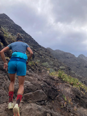 So unternehmen wir schöne Velotouren, gehen in den Wellen schwimmen und erkunden den Norden der Insel und die schroffe Vulkanlandschaft an der Küste beim Trailrunning. Zum Glück bläst auf Teneriffa fast nonstop ein erfrischender Wind, welcher die Wärme für mich erträglich macht. Roger nimmt mit Freude zur Kenntnis, dass auch ich das Meer mittlerweile liebe und auch mal einen Strandtag, ohne kribbelig zu werden, geniessen kann. Ich liebe das Peitschen der Wellen gegen die Brandung und den farbigen Sonnenuntergang über dem Meer. Beim Einschlafen im Sämi erinnert mich das Rauschen der Wellen an das Plätschern der Suone bei uns in der Dorna.