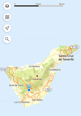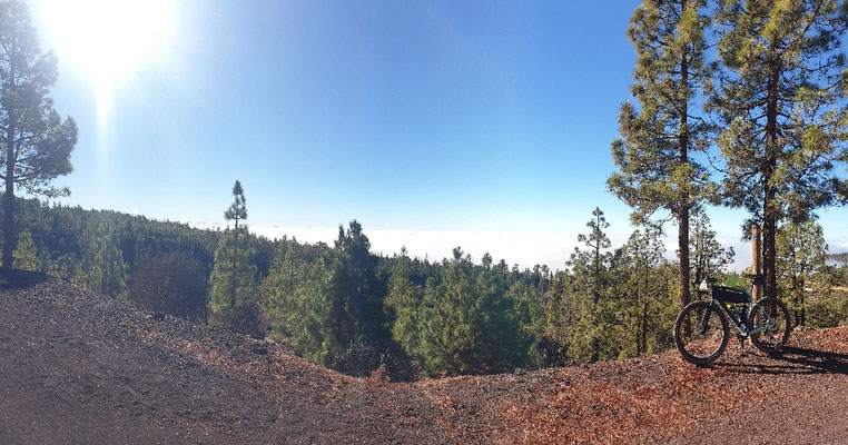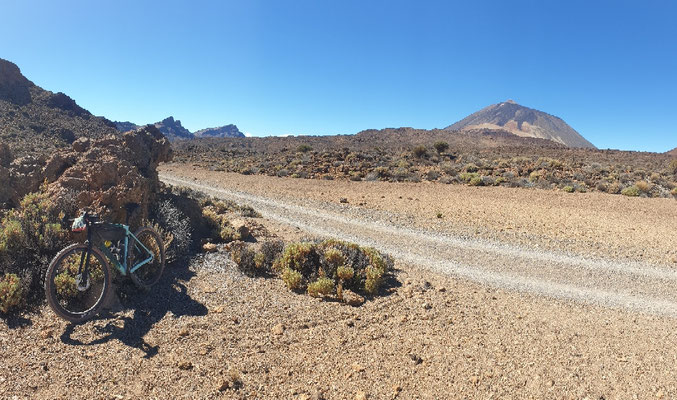 Weil es hier nur wenige Leute hat und auch in der Nacht sehr ruhig ist, bleibe ich einige Tage da. Es ist ungewöhnlich windstill für Teneriffa und speziell für diese Bucht. Normalerweise bläst hier meistens ein Wind und bringt Wellen fürs Surfen. Mit Bodysurfen wird leider nichts. Das heisst ich geniesse jeden Morgen den Sonnenaufgang auf dem Meer auf meinem SUP. Das Meer ist fast spiegelglatt und die Sonne geht langsam über der Nachbarsinsel La Gomera auf. Ich stelle erfreut fest, dass ich die Angst vor den Tiefen des Meeres ablegen konnte. Ich entferne mich mit dem SUP weit vom Festland und fahre jeweils direkt der Sonne entgegen. Ich überlege mir sogar, ob es rein theoretisch möglich wäre, mit dem SUP bis nach La Gomera zu paddeln? Möglich sicher, bestimmt hat das auch schon Jemand gemacht. Die Fähre braucht für die Überfahrt ca. eine Stunde, das heisst in einem Tag wäre das bestimmt machbar. Doch ohne Begleitung und ohne irgendwelche Seefahrts-Erfahrung wage ich ein solches Abenteuer lieber nicht. Ich begnüge mich mit kürzeren Ausfahrten. An einem Tag unternehme ich eine längere, anstrengende und abenteuerliche Runde mit dem Gravelbike. Oft enden die Schotterpisten plötzlich irgendwo im Niemandsland oder gehen in einen, mit dem Gravel für mich unfahrbaren Wanderweg über. Dann heisst es Bike schultern und wandern. Das einzige, was hier bei langen Ausfahrten mühsam ist, ist die Wasserversorgung. Aus dem Alpenraum bin ich es gewohnt, dass ich überall immer wieder auf Brunnen oder Wasserquellen treffe. Hier gibt es nirgends Wasser. Dementsprechend wenig trinke ich und wenn ich ein Dorf passiere, steuere ich meistens den Supermercado an um frisches Wasser oder ein Süssgetränk zu kaufen.