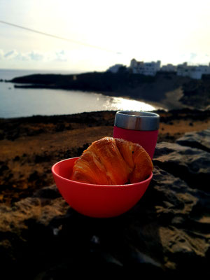 Zu zweit vergeht die Zeit im Nu. Wir erzählen uns gegenseitig unsere Lebensgeschichten. Und ich stelle wieder mal fest, ich bin nicht die Einzige die sich nichts traut und an sich und ihrem Weg zweifelt. Man sieht bei den anderen Menschen immer nur die Fassade und das Schöne. Wirklich dahinter sieht man erst, wenn die Person dies zulässt und ehrlich und offen darüber erzählt. Jeder trägt seinen Rucksack, der eine ist schwerer, der andere leichter. Doch auch leichte Rucksäcke müssen nicht unbedingt besser sein. Schade haben wir uns erst jetzt getroffen. Sie ist am Sonntag bereits wieder mit der Fähre in Richtung Huelva (Festland Spanien) aufgebrochen. Ich bewundere ihren Mut, wie sie ihrem Traum der Auswanderung gefolgt ist und jetzt die Rückreise, zwar in den sicheren Hafen der Schweiz - trotzdem ins Unbekannte, in Angriff nimmt. Wie sie das Positive aus dieser "schlimmen" Erfahrung sieht und den Schritt nicht bereut. Denn wenn man etwas nicht wagt, wird man es vielleicht ein Leben lang bereuen, dass man es nicht gemacht hat. Sie hat es gemacht, ist auf die Schnauze gefallen, wieder aufgestanden und hat dabei viel übers Leben und über sich lernen können. Ich bin mir sicher, dass auch bei ihr eine neue Türe aufgehen wird und in einiger Zeit klar sein wird, für was diese Erfahrung gut war und dass es sie in verschiedenen Bereichen weitergebracht hat. Wir tauschen unsere Handynummern aus und wer weiss, wann und wo sich unsere Wege wieder kreuzen werden.