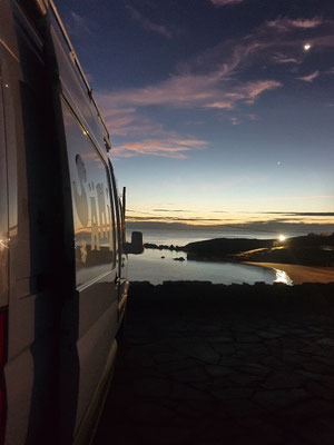 So liege ich an diesem Abend alleine in meiner Räuberhöhle im Sämi, in Gedanken versunken und begebe mich immer weiter in der Negativspirale nach unten. Der Austausch über WhatsApp mit Freundinnen und natürlich Roger, heitern mich ein wenig auf. Irgendwann überfallt mich die Müdigkeit und ich schlafe ein. Am nächsten Morgen erwache ich früh. Ich frühstücke, trinke einen starken Kaffee und begebe mich mit dem SUP in Richtung Strand. Mit Freude sehe ich, dass über Nacht ein VW-Bus mit Schweizer Kennzeichen neben mir parkiert hat. Den ersten Schweizer Camper, welchen ich seit meiner Abreise sehe! :-) Natürlich schläft die Person noch.